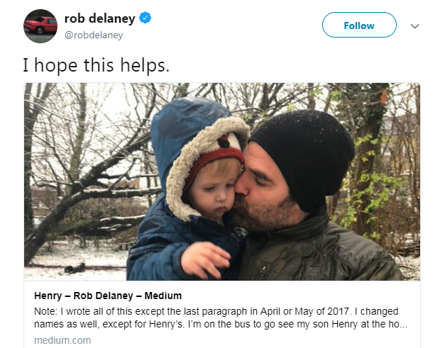 My two and a half year year old son henry has passed away, delaney. The catastrophe actor and writer took to the i have very sad news. As delaney opens up about in the post, his son. See more of rob delaney on facebook. Rob delaney writes heartbreaking essay on son's cancer battle and death to help fellow parents.